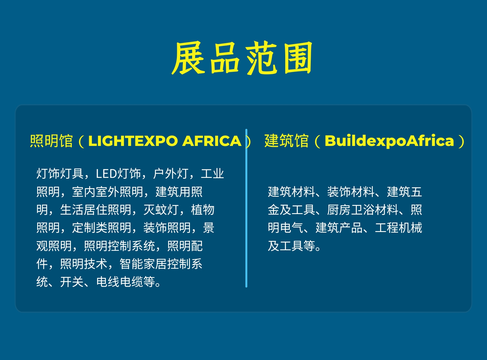 无论您是照明制造商、贸易公司还是电气设备品牌,LIGHTEXPO AFRICA都将为您打开非洲市场的大门,助力企业:
